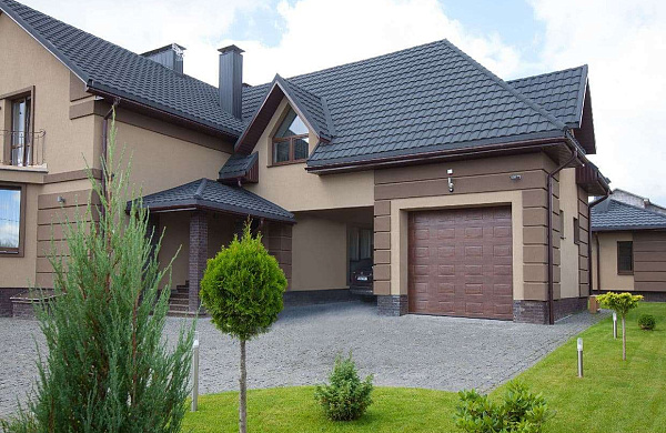 Гаражные ворота Prestige цвета «Темный дуб» (тип панели - филенка)