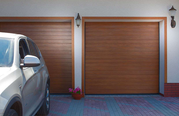 Гаражные ворота серии Prestige цвета «Золотой дуб» (тип панели - S-гофр)