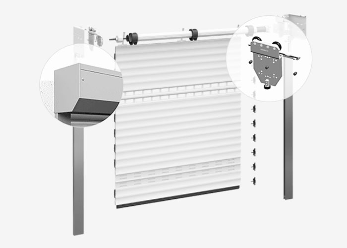 Короб роллетных ворот располагается в нише проема, обеспечивая максимальное использование светового проема и отсутствие выступающих элементов конструкции.